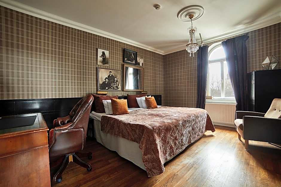 Spacious and bright suite with a seating area, cable TV and a work desk.