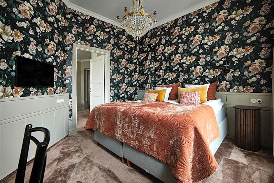 Spacious and bright suite with a seating area, cable TV and a work desk.